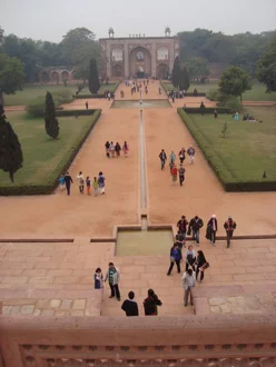Next we saw Humayun’s tomb. This is kind of a forerunner to the Taj Mahal – a monument to a departed Mughal emperor, built by his wife in the mid-1500s. For me, the most interesting thing was that it featured my first Islamic garden – I had been reading about them in The Art of the Islamic Garden by Emma Clark, but had never actually seen one! Such gardens are designed as a 2x2 square bisected by long, narrow water pools in the shape of a cross, with a fountain in the middle.